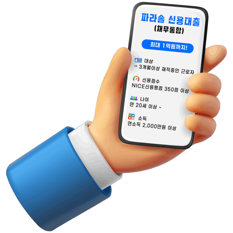 * 최대 1억원, 120개월 상환이 가능한 신용대출 상품입니다.